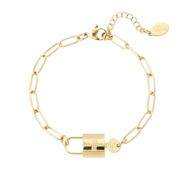 Op zoek naar de perfecte armband om te combineren met meerdere leuke armbandjes? Dan is deze zilveren schakelarmband met bedel in de vorm van een slot met sleutel echt iets voor jou! De armband heeft een speels uiterlijk en is mooi afgewerkt dankzij de schakels. De armband is gemaakt van stainless steel en heeft een verstelbare sluiting. Dankzij deze sluiting kun je de armband vanaf 16 cm dragen, tot en met 19 cm. Verkrijgbaar in de kleuren zilver en goud.