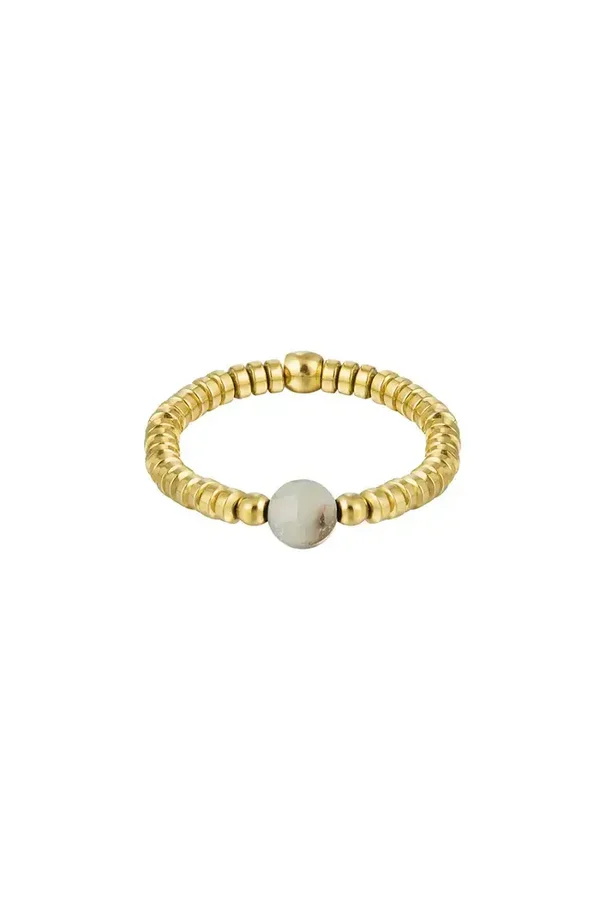 Hoe tof is deze elastieken gouden ring met zwarte grote steen. De ring beschikt over kleine kraaltjes waardoor er een speels effect wordt gecreëerd. De ring is perfect te combineren met meerdere ringen. Ook leuk om deze ring met meerdere zwarte sieraden te combineren voor een toffe look! De ring is gemaakt van hematiet in combinatie met zwarte agaat en we hebben ze in de kleuren zwart en groen.