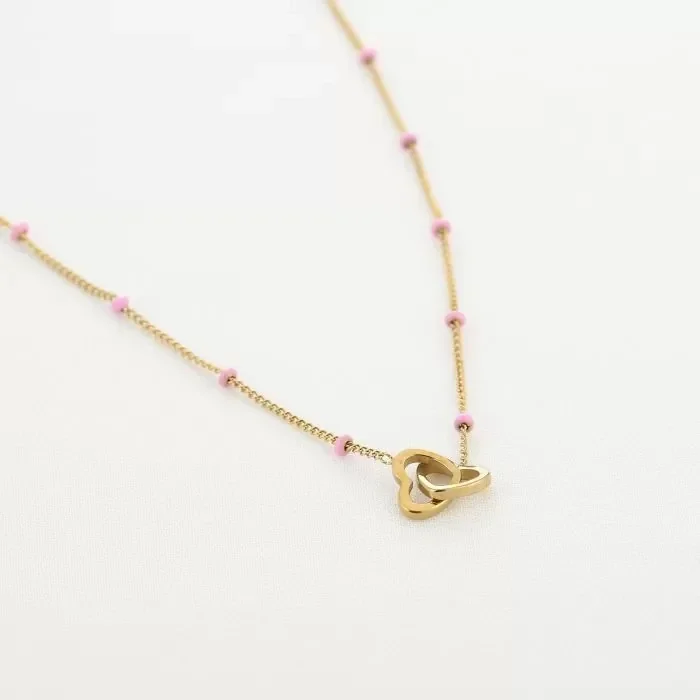 Ketting met 2 open hartjes die in elkaar grijpen. Leuk voor jou en je beste vriendin, moederdag of voor een andere geliefde. Gemaakt van stainless steel, verkleurt niet!