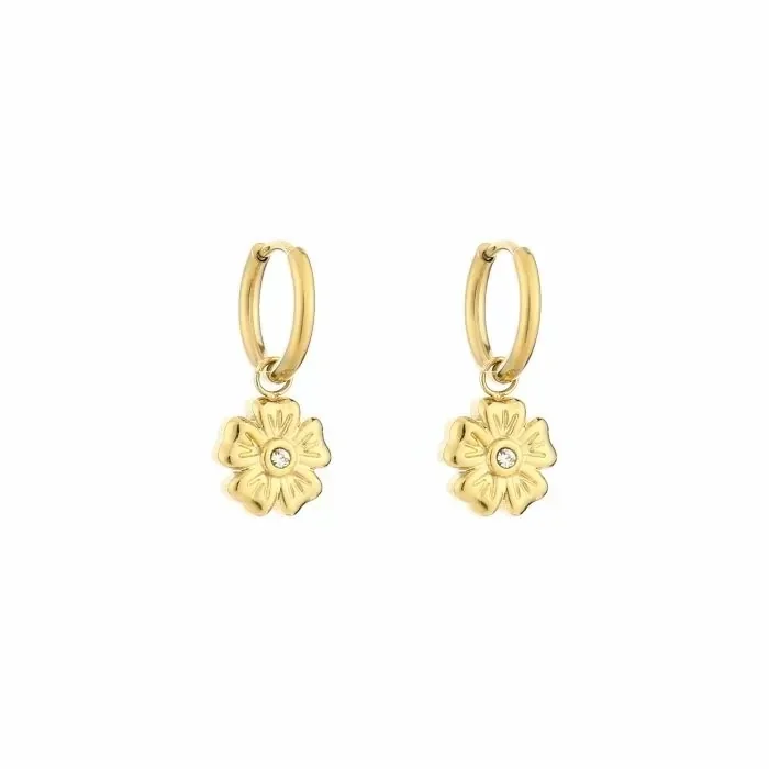Hoe leuk zijn deze oorbellen? Dit zijn subtiele oorbellen met een bloem bedeltje er aan met daarin een steentje! Deze oorbellen zijn verkrijgbaar in het goud.